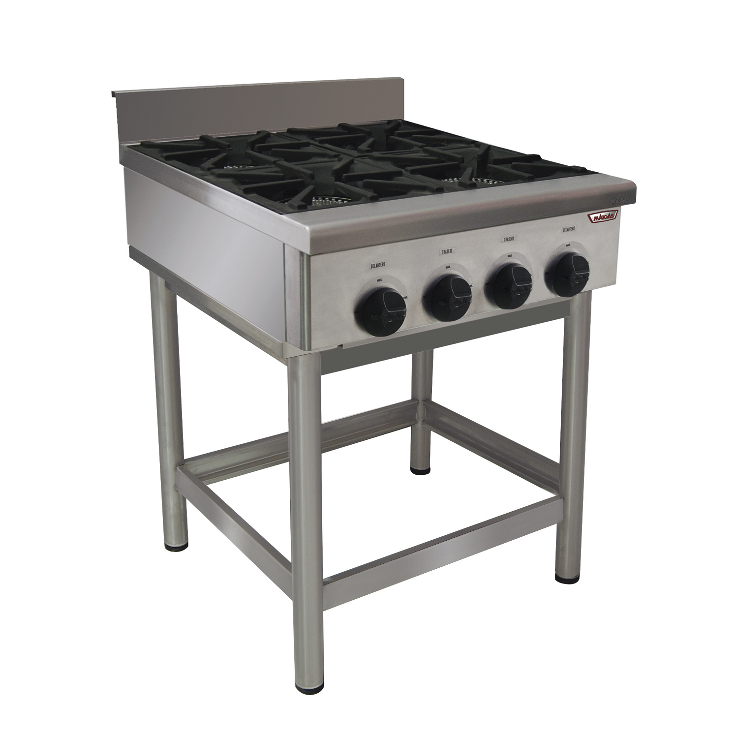 Anafe Bajo 4 platos 30×30 Construidos íntegramente en acero inoxidable. Platos de fierro fundido tratados con pintura resistente a altas temperaturas, diseñadas para sostener las ollas sin interrumpir la transmisión del calor.
