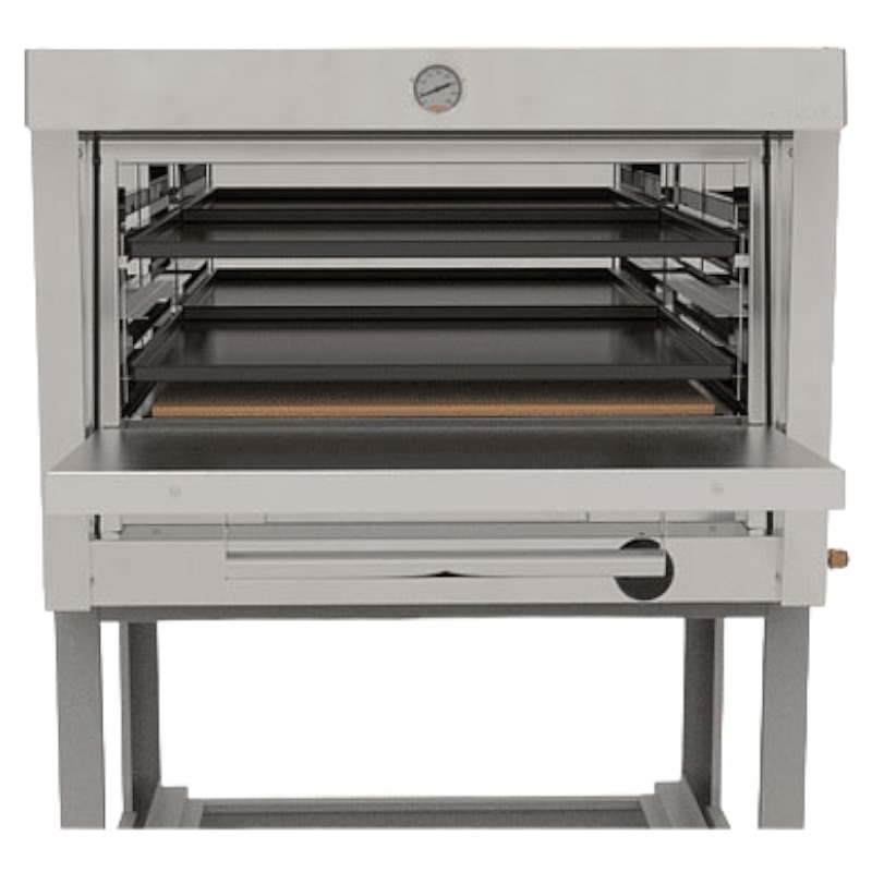 - La cámara del horno industrial MAIGAS está fabricada completamente con acero inoxidable, además incorpora ladrillos refractarios para homogeneizar temperatura de cocción.