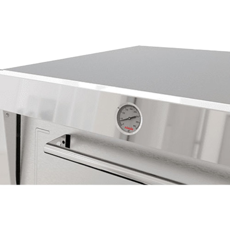 Horno fabricado completamente con acero inoxidable, 2 bandejas enlozadas, termometro abalogo de 400°C. bandejas de 58×65 cms.